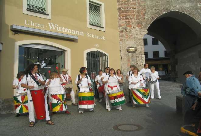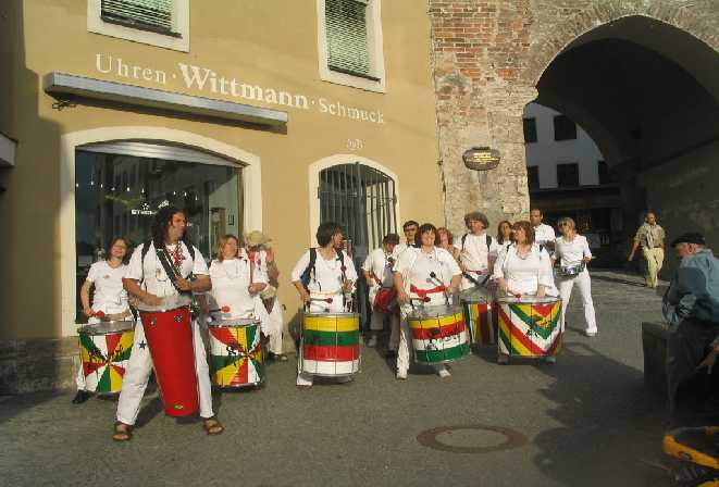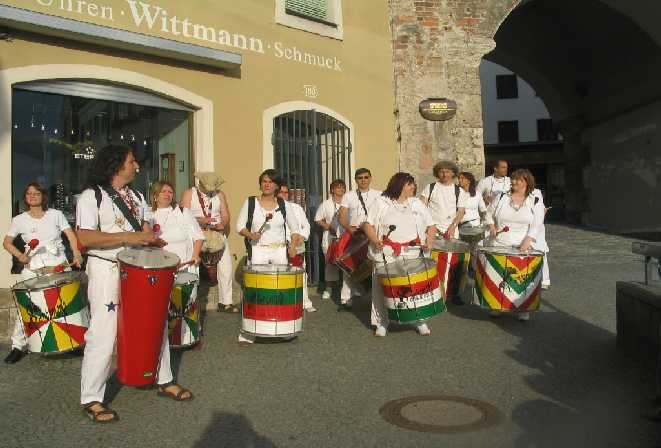 Sambamania spielt in der Abendsonne vor historischer Kulisse Bloco Afro aus Bahia.