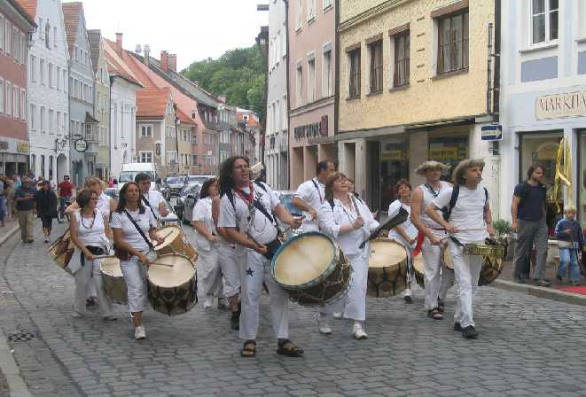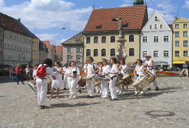 Sambamania spielt auf verschiedenen Plätzen und Straßen Maracatu :