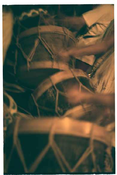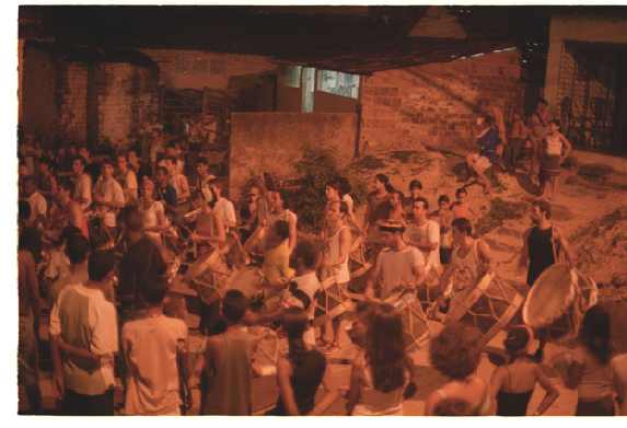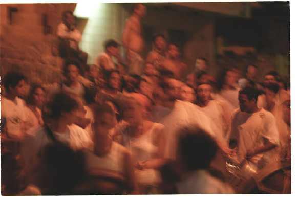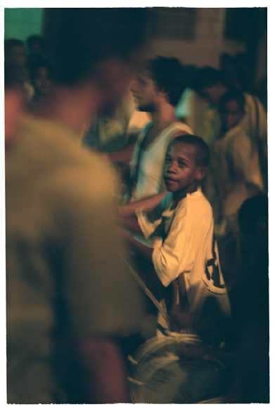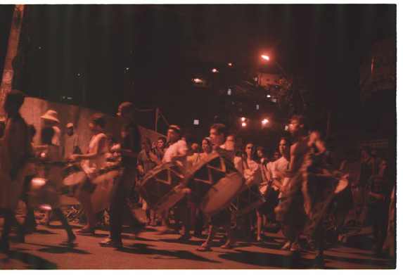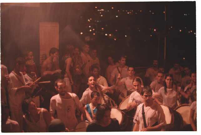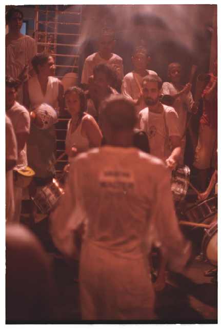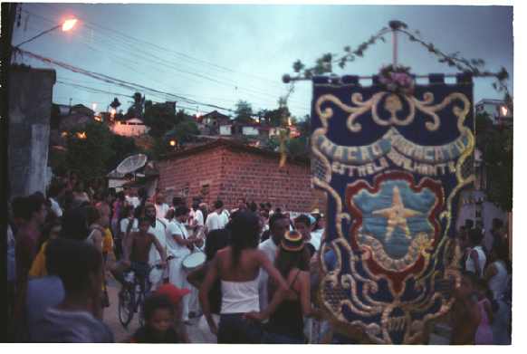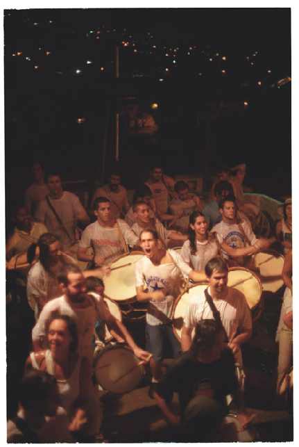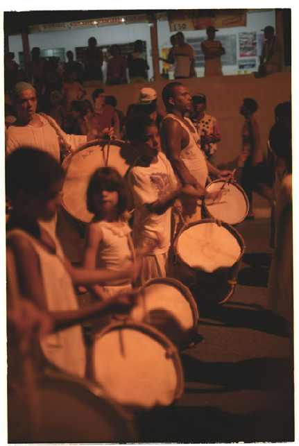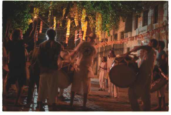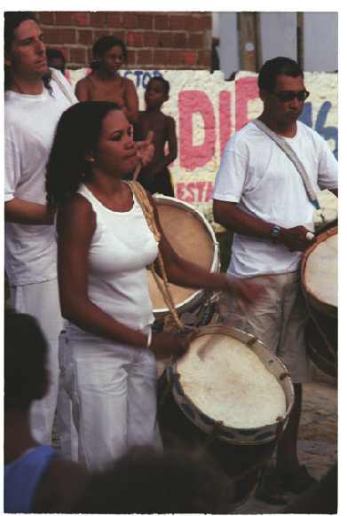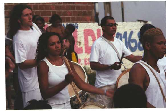 Eine Trommlerin, im Hintergrund Alto Jose do Pinio, wo sich der Sede